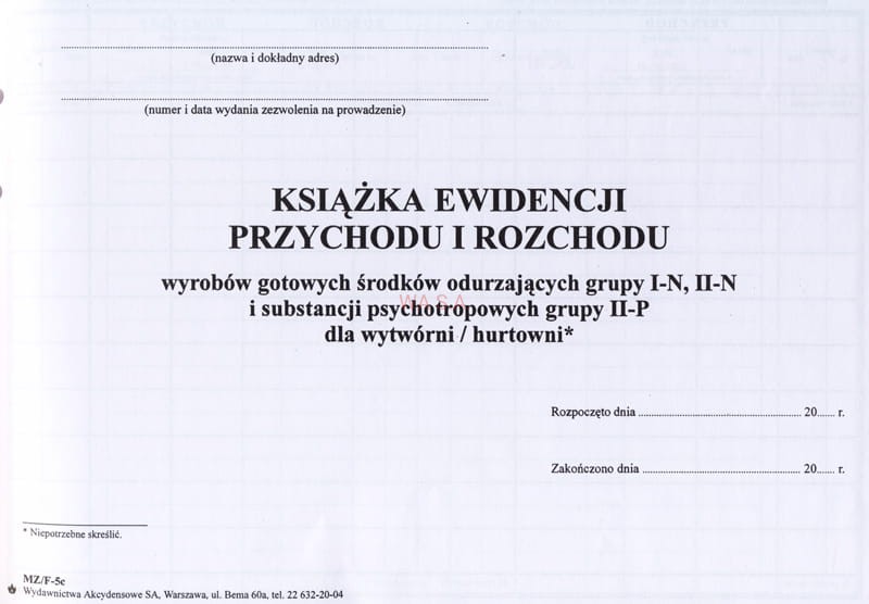 F-5C Książka ewidencji przychodu i rozchodu środków odurzających i psychotropowych -HURTOWNIA