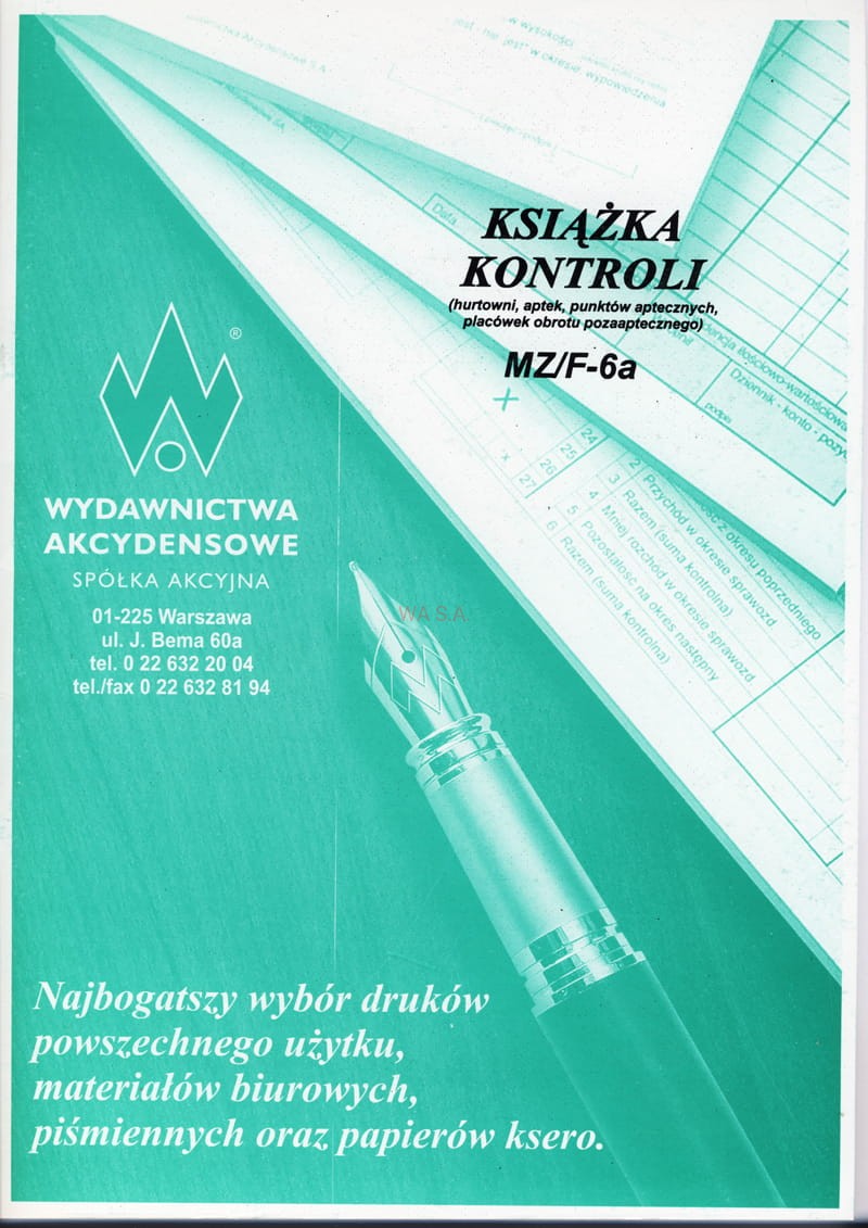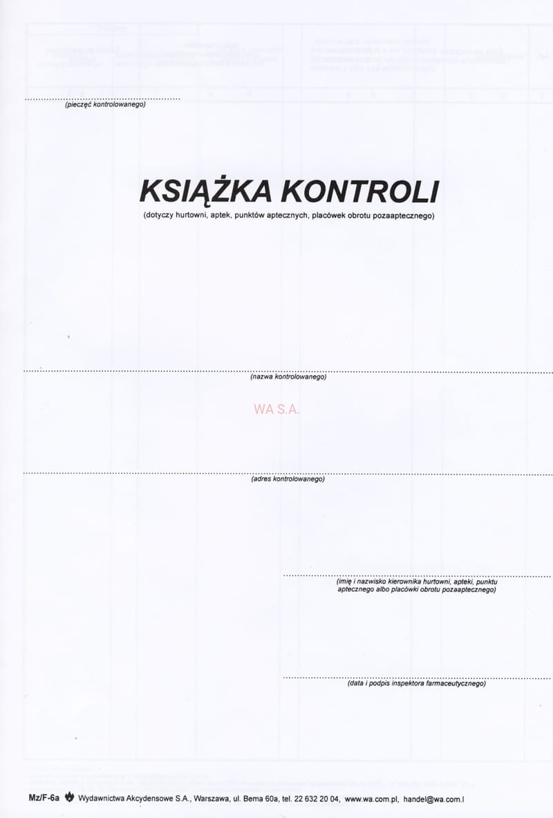 F-6A Książka kontroli hurtowni, aptek
