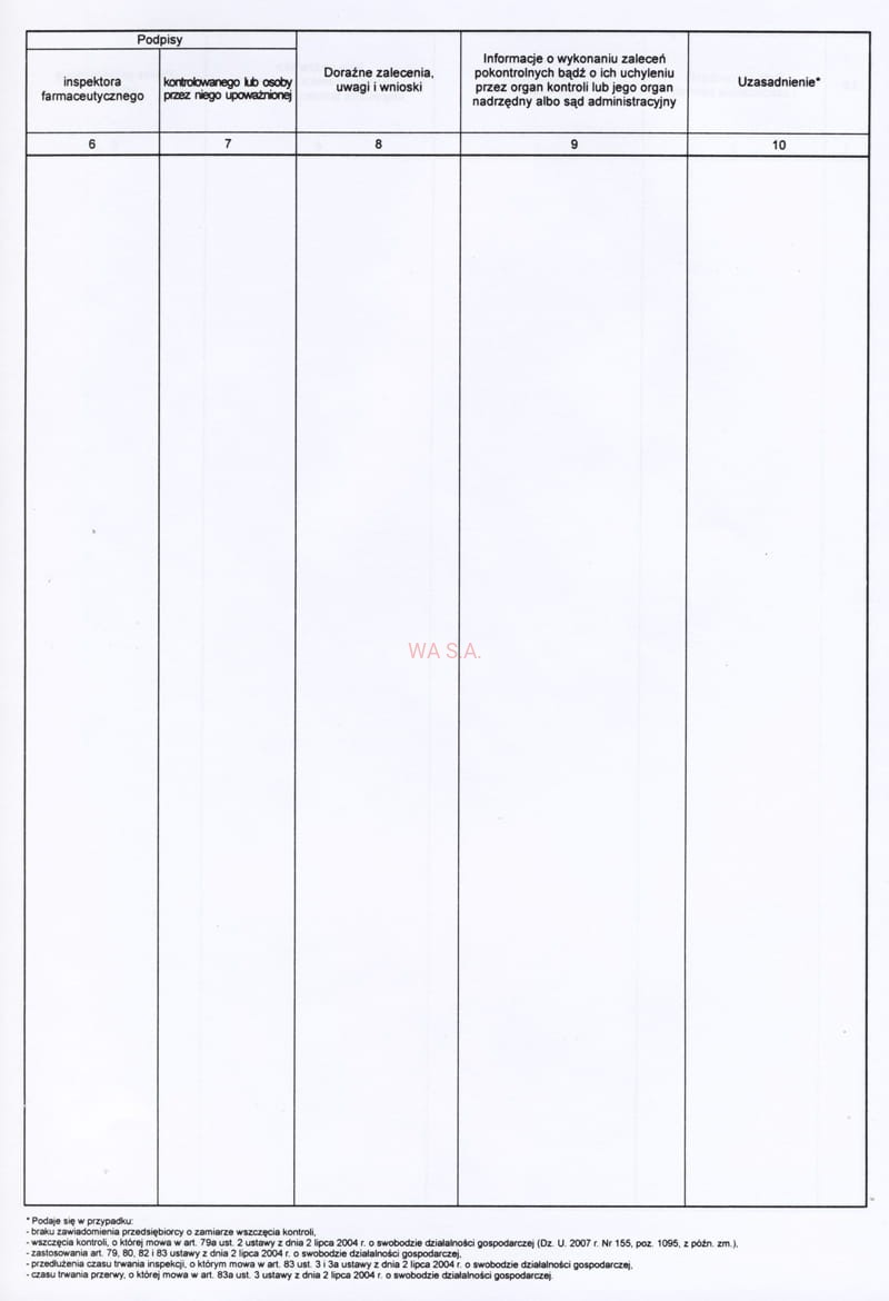F-6A/2021 Książka kontroli inspektora farmaceutycznego, format A4, papier offsetowy, zeszyt 32 strony (16 kart). dotyczy hurtowni, aptek, punktów aptecznych, placówek obrotu pozaaptecznego. Nowy wzór. Dz.U. poz.2230 z dn. 14.12.2020 r.