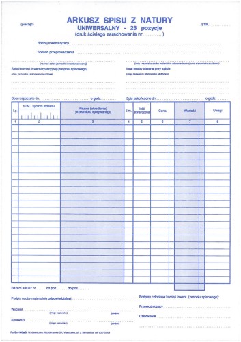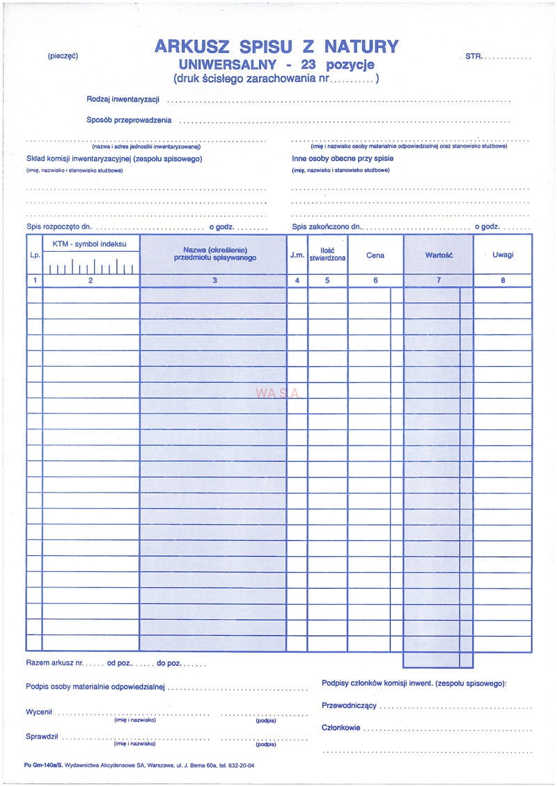 Gm-140a/s Arkusz spisu z natury 23 poz.samokopia