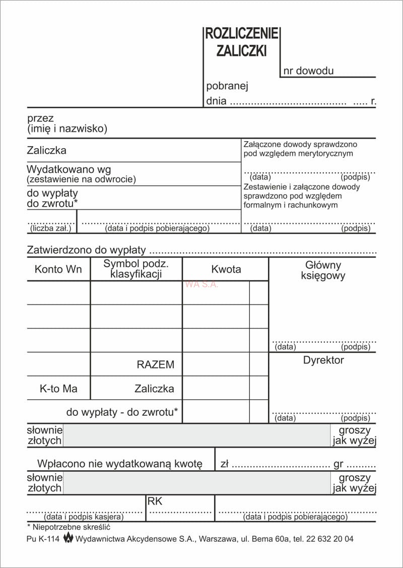K-114 Rozliczenie zaliczki