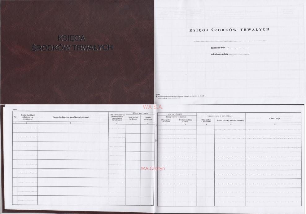 K 207 Księga Środków Trwałych, Format A4, Objętość 100 kart, Oprawa sztywna introkal , kolor okładek wysyłany losowo.