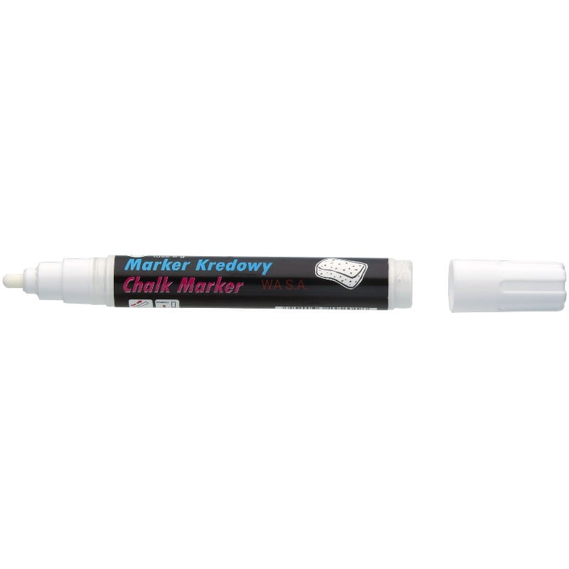 - Marker z płynną kredą, do pisania po tablicach czarnych, białych, po szkle i powierzchniach plastikowych.