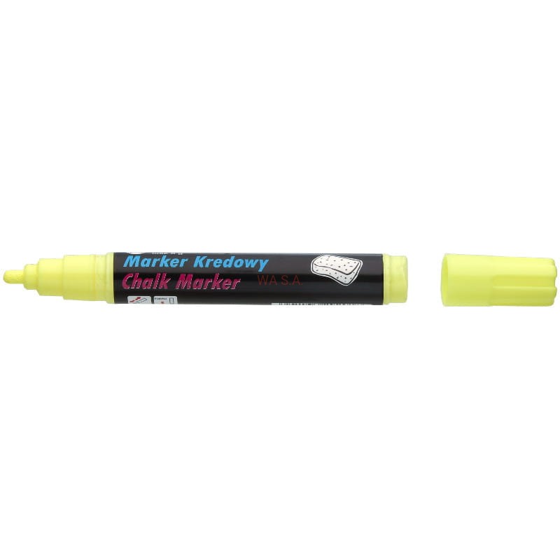 Marker z płynną kredą, do pisania po tablicach czarnych, białych, po szkle i powierzchniach plastikowych. Zmywalny wodą, jak zwykła kreda – np. tradycyjną. Nasączalne końcówki fibrowe, bezwonny tusz pigmentowy, nie zawiera xylenu.