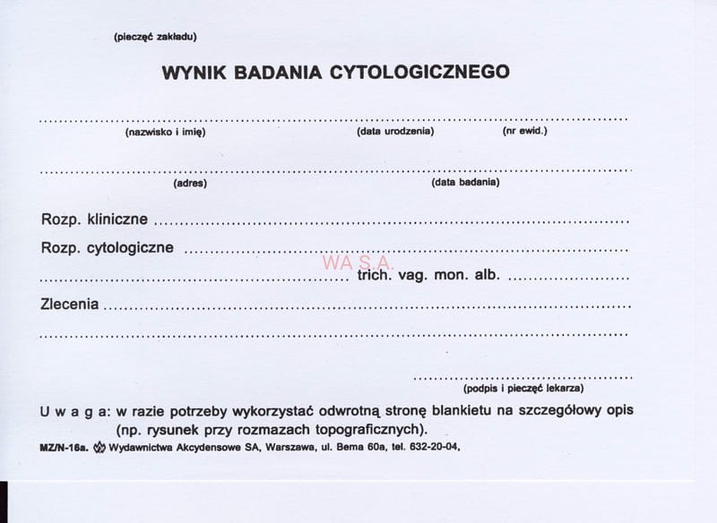 N-16a Wynik badania cytologicznego