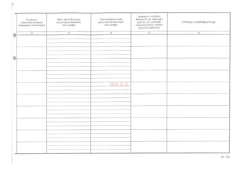WKT-101 Dziennik korespondencji 16 RUBRYK