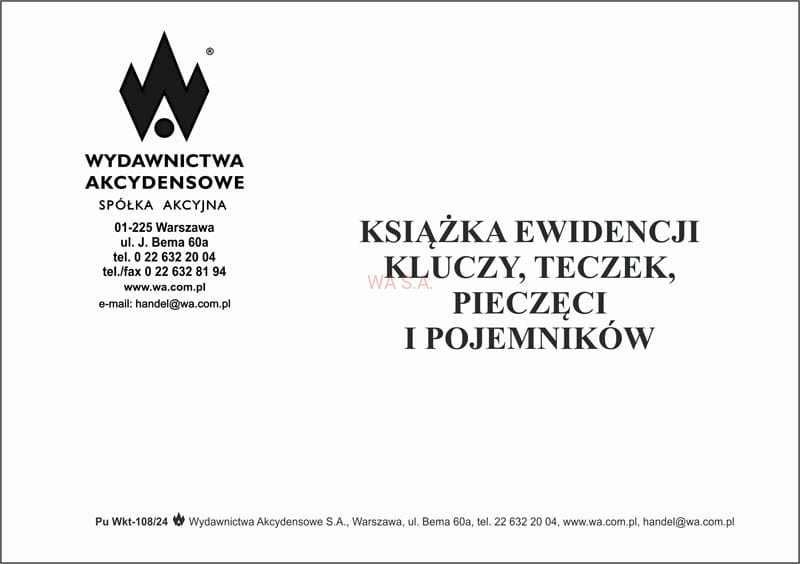 Wkt-108 Książka ewidencji kluczy,teczek,pieczęci i pojemników