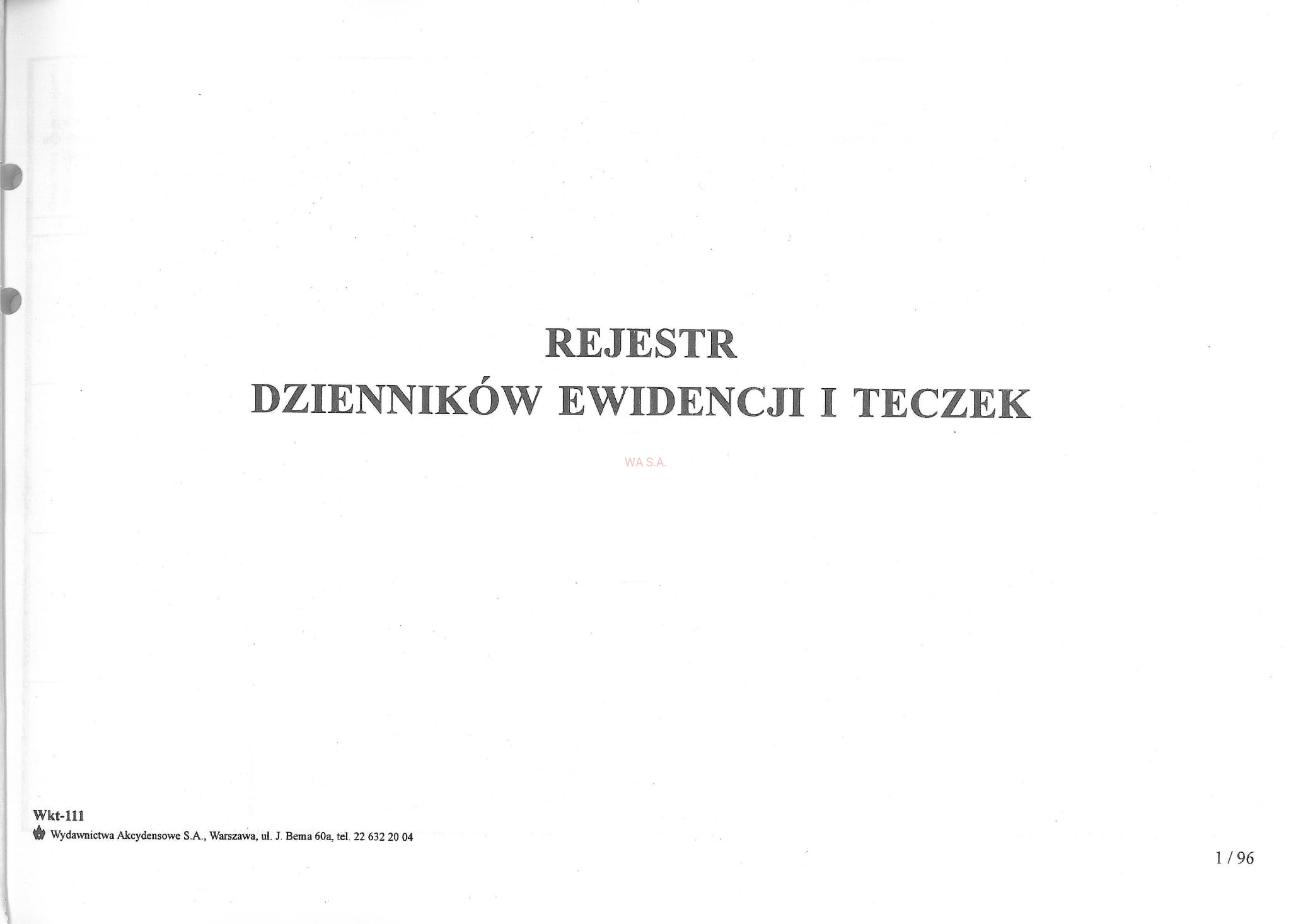 Wkt-111 Rejestr dzienników ewidencyjnych i teczek