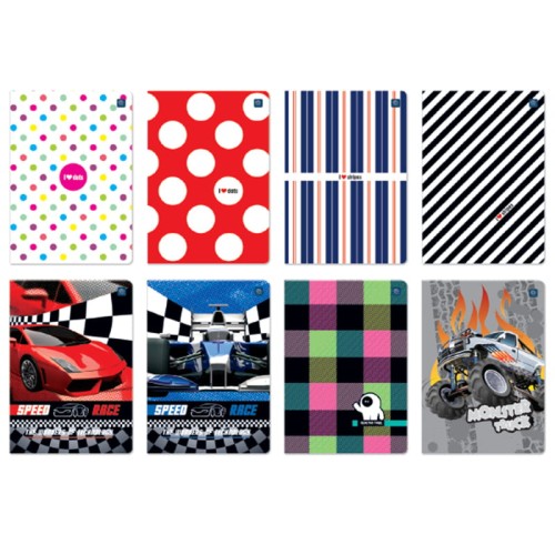 Zeszyt A5 32-kartkowy, kratka.Okładka kartonowa, gramatura papieru: 60g/m2.Różne wzory okładek