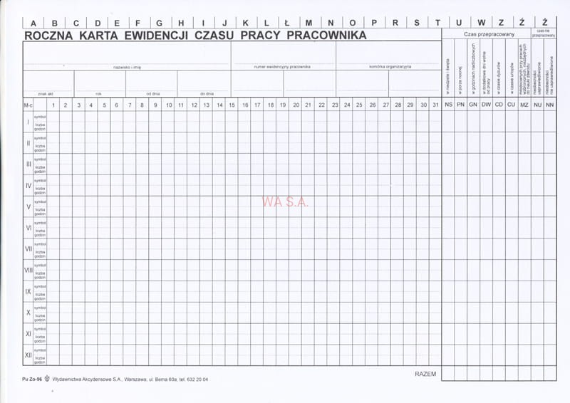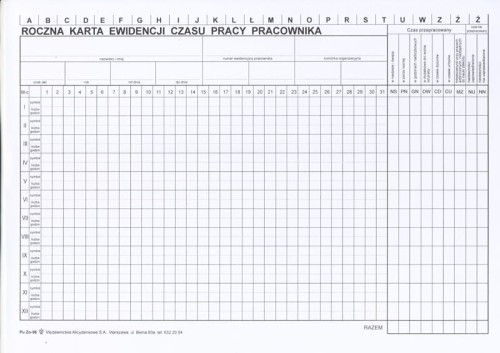 Zo-96 Roczna karta ewidencji czasu pracy 10szt
